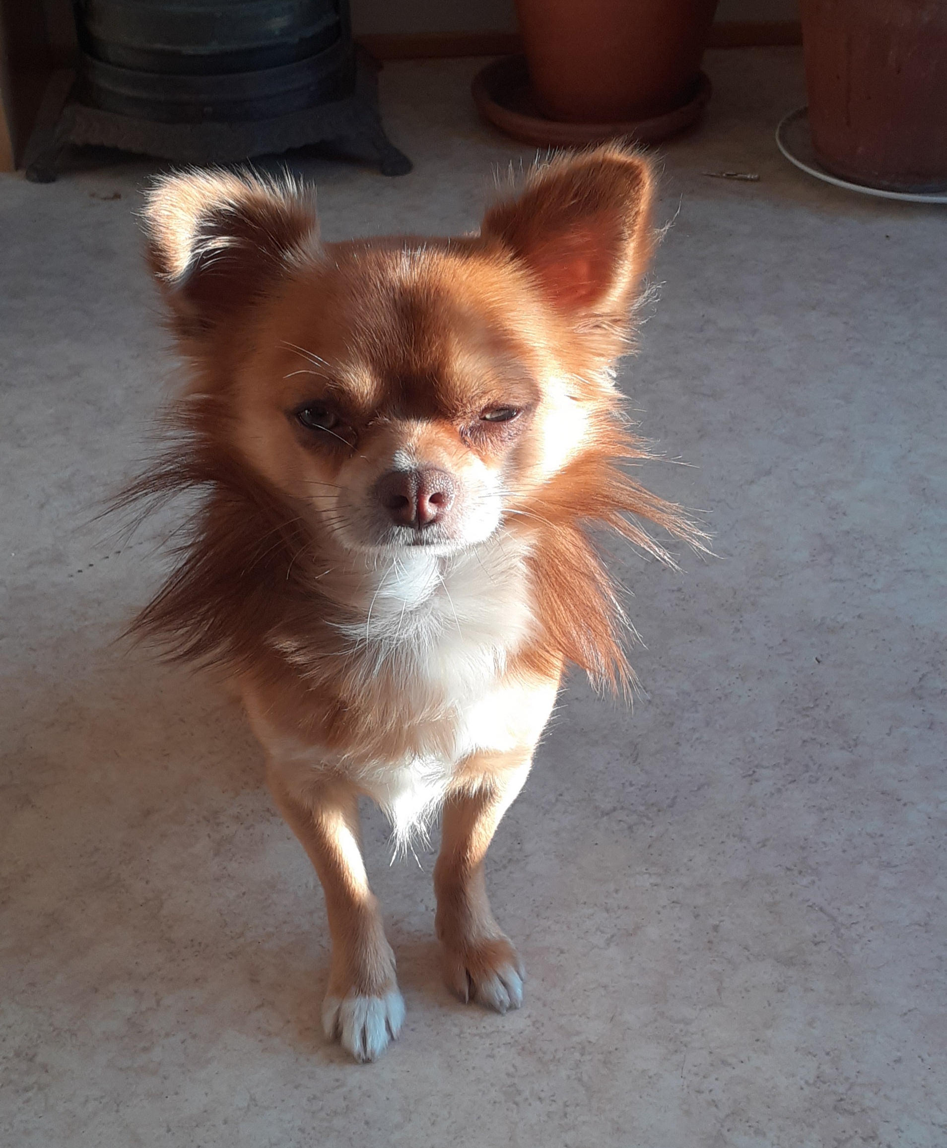 Pépi a d’autres intérêts dans la vie que de manger. Alors souvent, ses croquettes attendent bien longtemps avant d’être mangées. Il se passe quelque chose de complètement différent si sa maîtresse dépose une friandise de chien comme cerise sur son gâteau de croquettes. Une friandise de chien, ça peut-être un petit morceau d’intestin de bœuf séché, un sabot de vache ou un morceau de saucisse d’âne. Alors là, comme si Pépi Pépito était le conducteur d’un avion à hélice, un cavalier sur son pur sang ou un orang-outan, il fonce en piqué sur sa gamelle, prend dans ses mâchoires d’habitudes adorables le petit bout de plaisir et file très loin de sa maîtresse. Pour l’engloutir. Quand il y a plusieurs petites friandises, et qu’il ne peut en prendre qu’une dans sa gueule, il recommence son manège : il vient ventre à terre, saisit le bitzeli et repart comme un voleur.